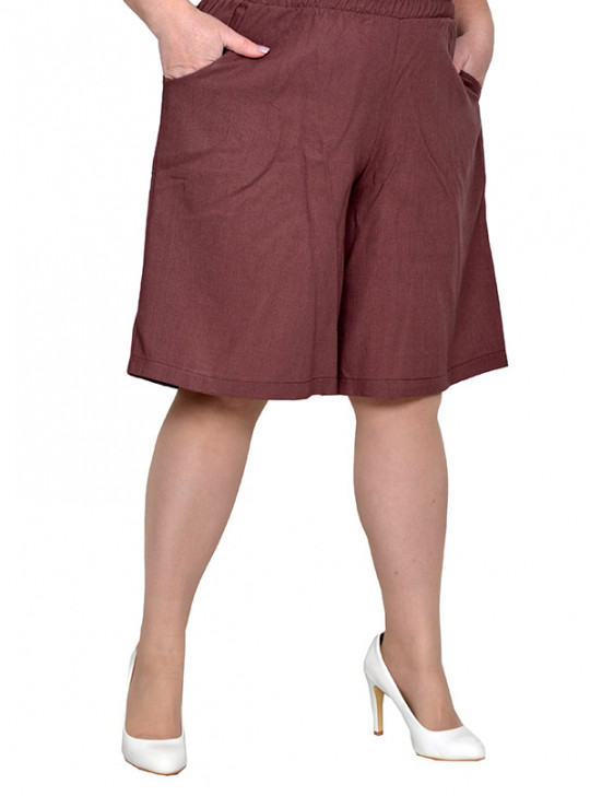 Шорты из льносодержащей ткани. Состав 85% вискоза,15% лен. Пояс на широкой резинке, с карманами. Ткань легкая, не тянется, приятная к телу.
